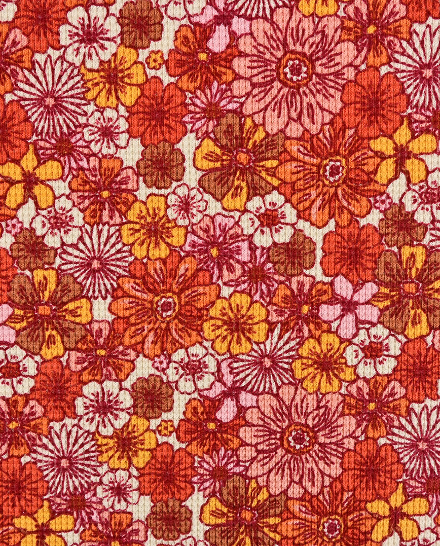 Waffle jersey toff retro flowers 5262