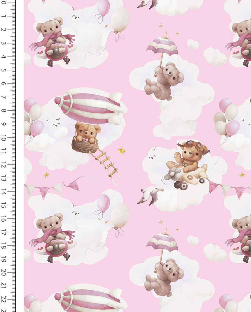 Flannel Digital Teddy Bears & Balloons 6131